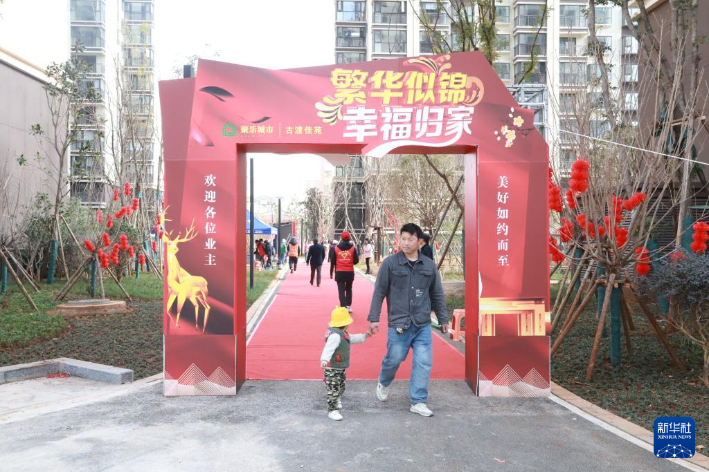 1月3日,官渡古镇回迁安置房建设项目二期“古渡佳苑”正式交付,回迁居民高高兴兴回家。新华网发(范美佳 摄)