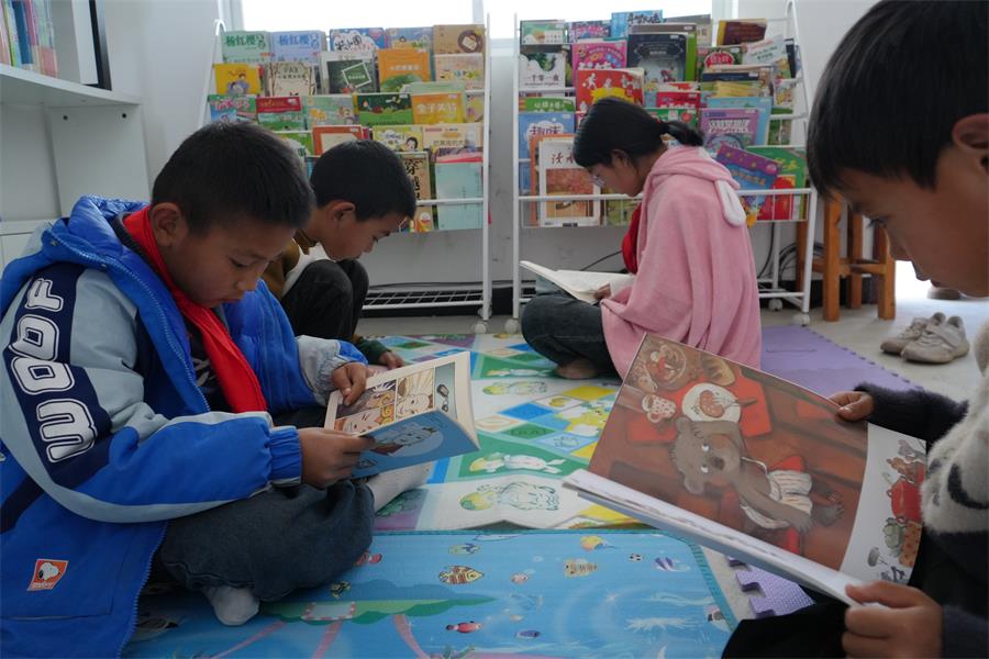 小朋友们在农家书屋阅读(2月10 日摄)。