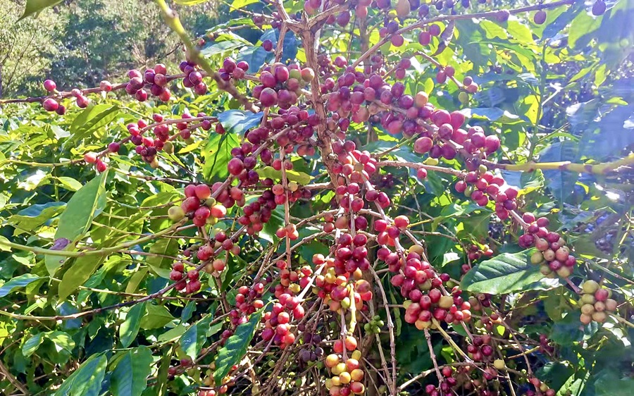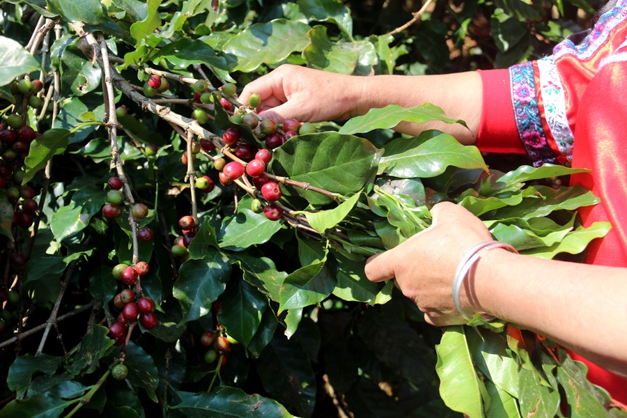 咖啡果缀满枝头(2月7日摄)。