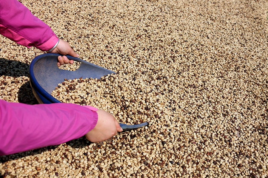 晾晒咖啡豆 (2月7日摄)。