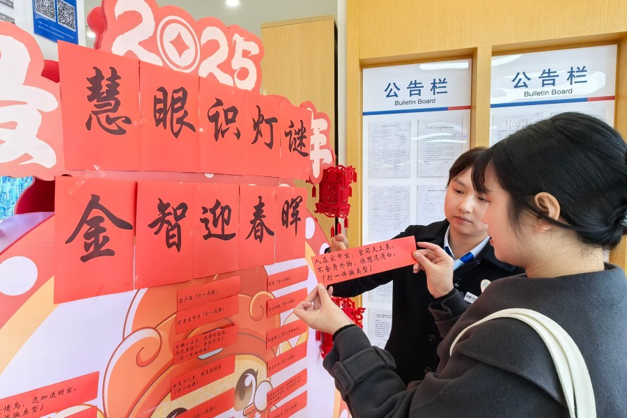 浦发银行昆明分行开展元宵节金融知识灯谜活动(2月12日摄)。
