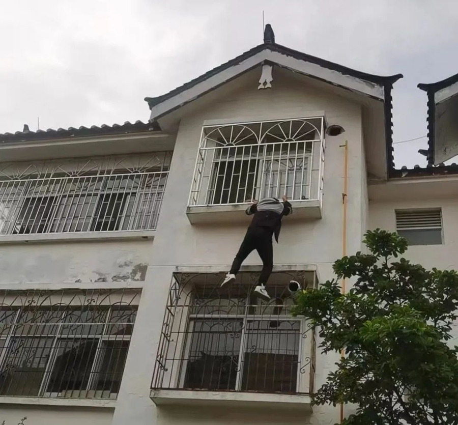 罗高林徒手爬楼救火(2024年7月14日摄)。
