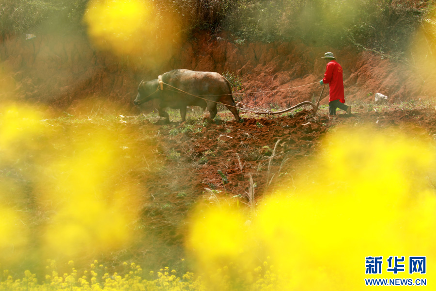 近日,在云南省丘北县八道哨乡,金黄的油菜花随风摇曳,农户正抢抓时令,积极开展春耕备耕,绽放的油菜花与耕种的农户们共同绘就了一幅美丽的春耕画卷。(完)(马卫忠)