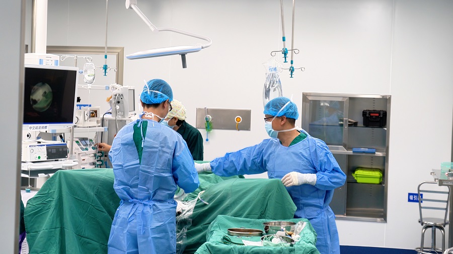 昆明医科大学第二附属医院医生姜永明带教泸水市第一人民医院医务人员开展腹腔镜下泌尿手术(资料图)。