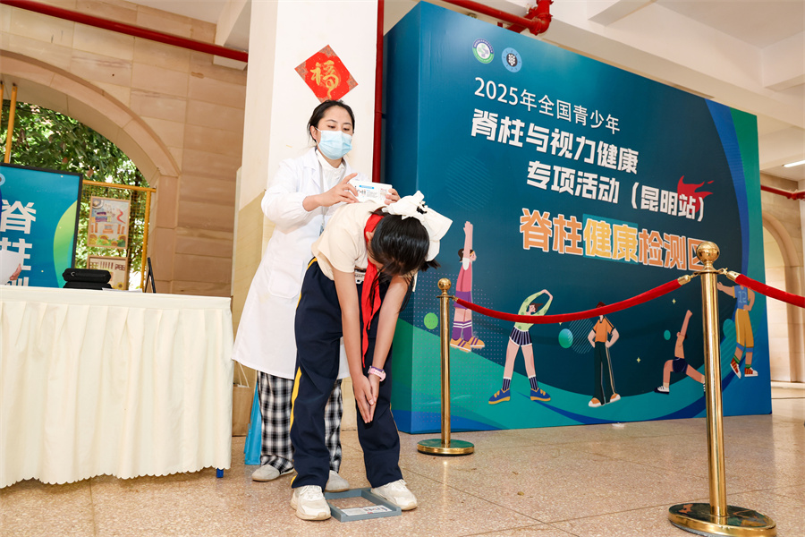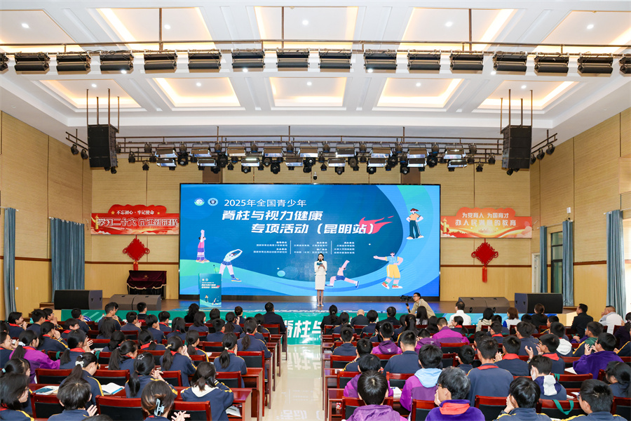 4月25日,2025年全国青少年脊柱与视力健康专项活动(昆明站)在昆明西南联大研究院附属学校展开。当天,近600名学生在现场参与脊柱侧弯检测和视力检测,并聆听青少年脊柱与视力健康科普讲座。