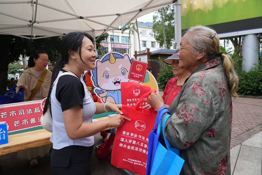 普法志愿者向群众解读法律常识(5月17日摄)。德宏州司法局 供图