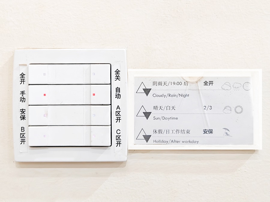 紧接着,小组成员对控制面板进行了重新设计与编程,为智能照明系统增加“手动”控制模式。自动模式下,员工可根据个性需求手动开灯,生产时段,则一键切换为“自动模式”。