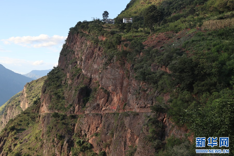 危崖之上的白鹤驿(9月16日摄)。新华网发(杨荣选 摄)