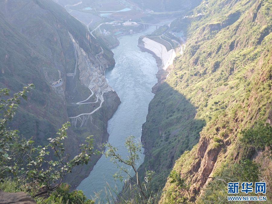 从白鹤驿俯瞰白鹤滩水电站(9月16日摄)。新华网发(杨荣选 摄)