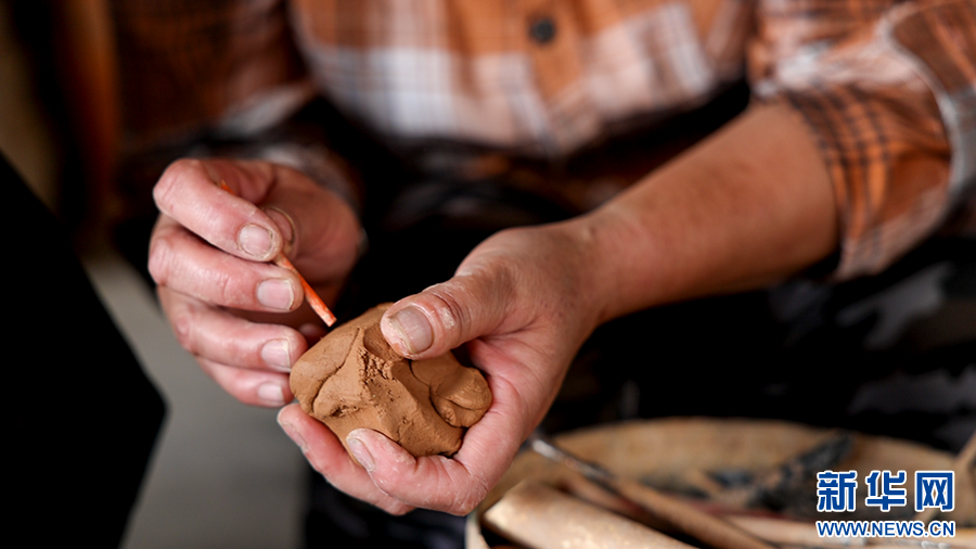 在曼掌村,游客可以体验用陶土制作大象(3月8日摄)。新华网发(徐华陵 摄)