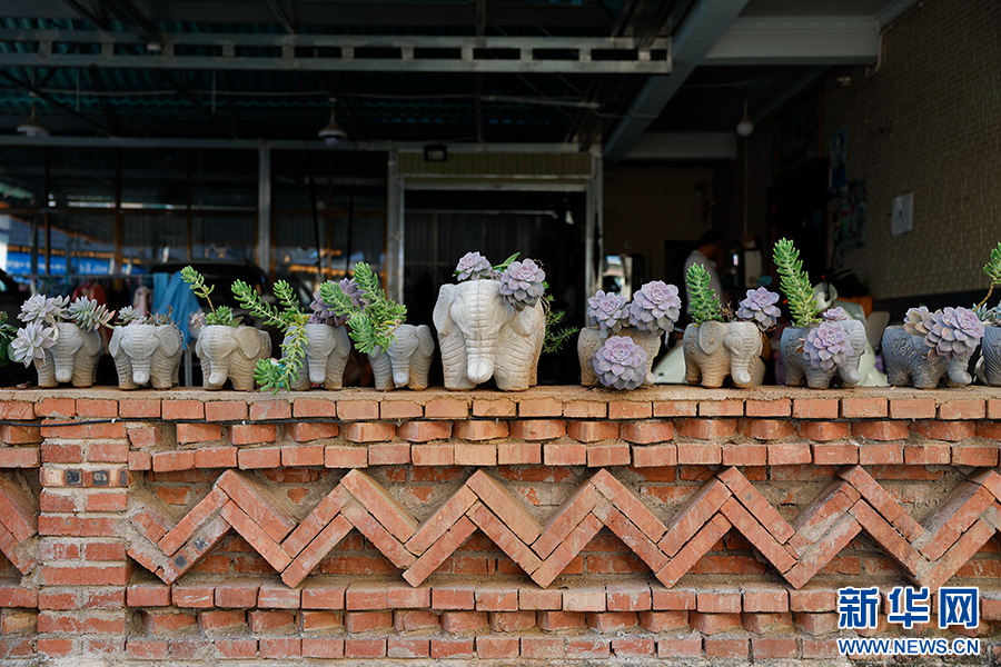 曼列村中有许多与大象相关的元素(3月8日摄)。新华网发(徐华陵 摄)