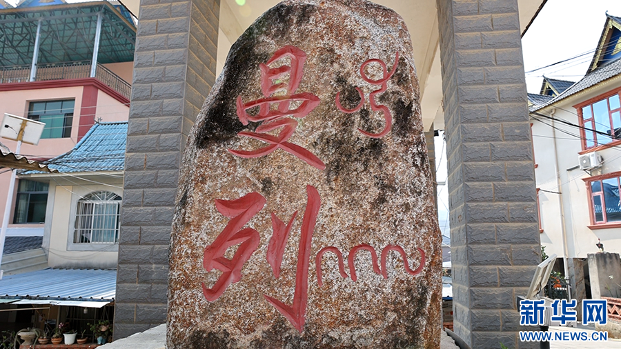 曼列村的石碑(3月8日摄)。新华网发(徐华陵 摄)