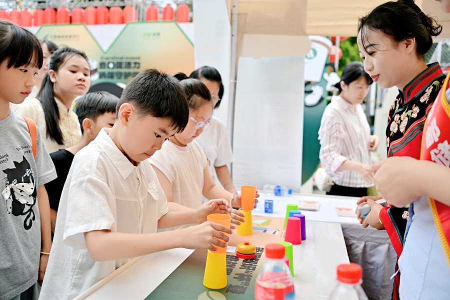 青少年在进行金融知识游戏互动(9月14日摄)。