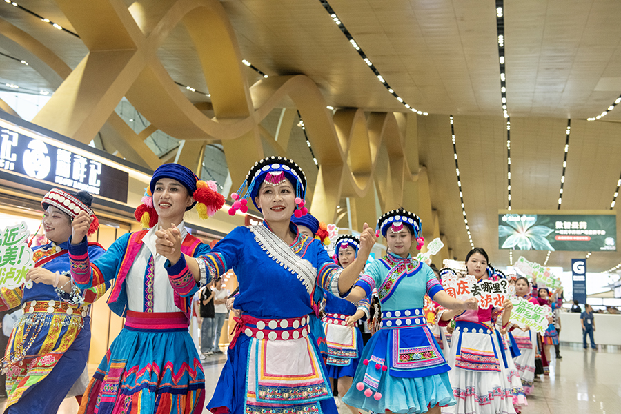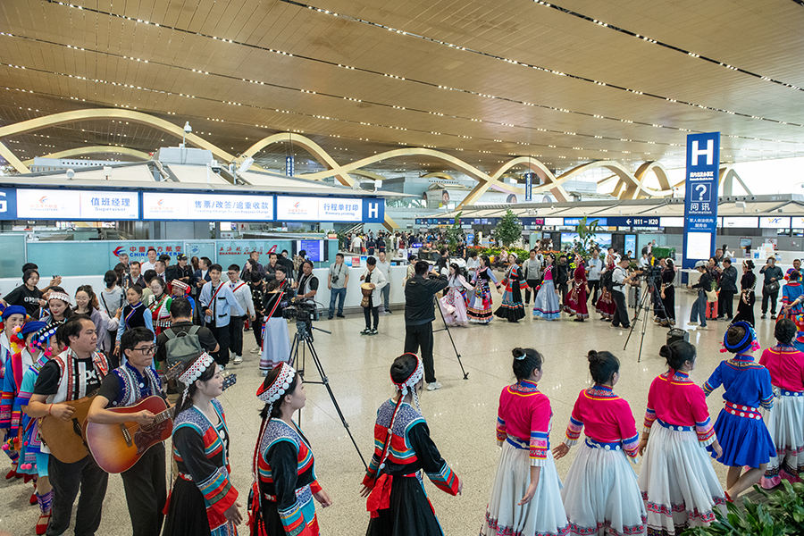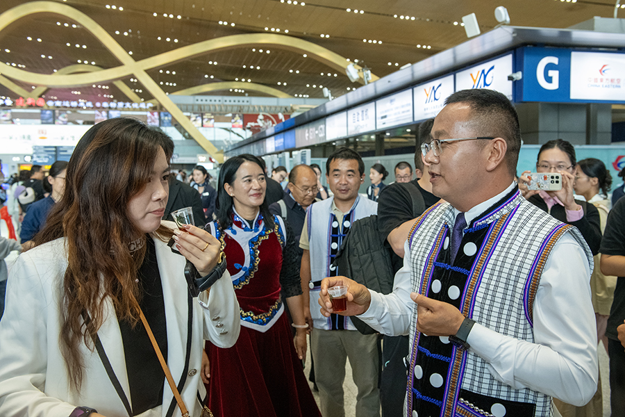 泸水市以“相约怒江·香誉世界”为主题进行推介,现场汇聚怒江峡谷特级咖啡豆与高原草果,饱含民族特色的文艺表演,通过咖啡、草果、火腿等特色农产品品鉴与民族文化展示,带领旅客沉浸式感受“峡谷怒江·养心天堂”的独特魅力。