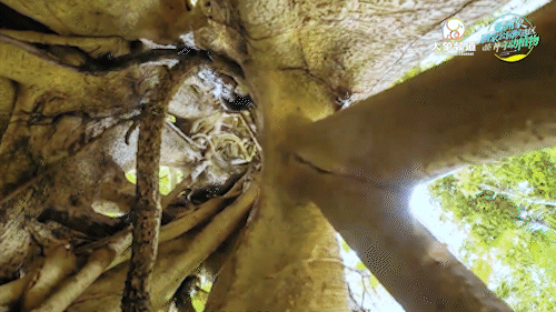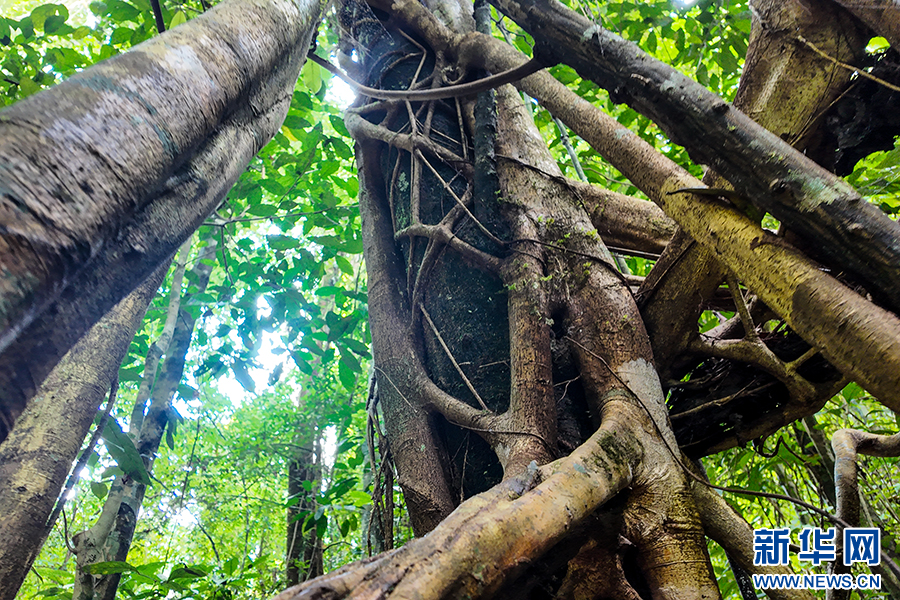 绞杀榕缠绕勒紧宿主植物,逐步完成绞杀(2024年11月20日摄)。新华网发(徐华陵 摄)