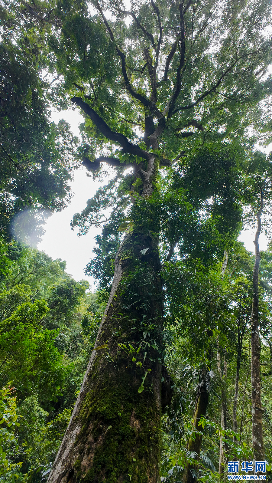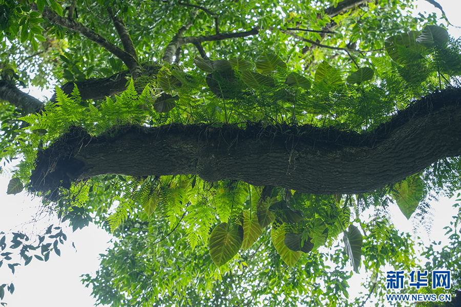 八蕊单室茱萸树干上分布着各类植物(7月7日摄)。新华网发(徐华陵 摄)