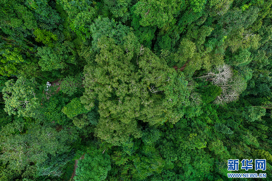航拍下的八蕊单室茱萸枝繁叶茂(7月7日摄)。新华网发