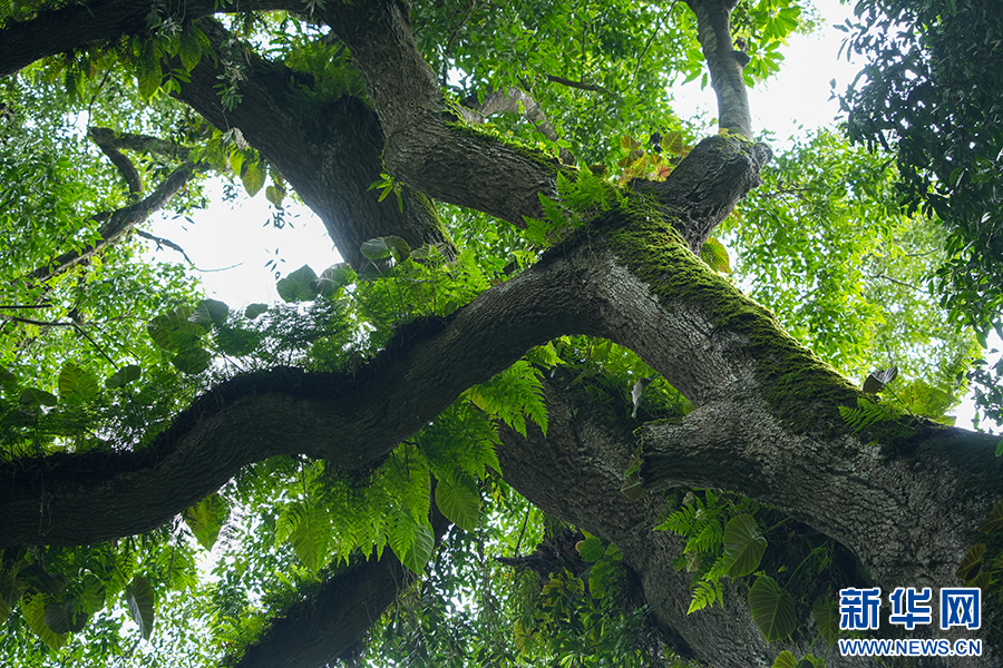 八蕊单室茱萸枝干繁多,表皮粗糙,为各类动植物提供了生存空间(7月7日摄)。新华网发