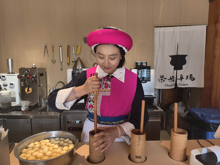 茶馆里制作藏式奶茶。记者 彭少杰 摄