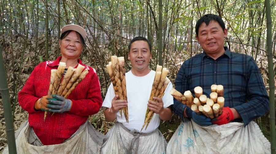 清晨的阳光洒在彝良县牛街镇三合村的竹林里,薄雾尚未散尽,数十名笋农背上特制的背袋,戴上手套、穿梭在竹林间,寻找刚冒头的新笋。只见他们弯腰屈膝,轻轻拨开枯叶,然后对准笋根用力一掰,一根根鲜嫩的竹笋便落入袋中。“我家有60亩竹林,今年天气好,雨水也好,笋子大量增产,全部收完后大概有10多万元的收入,现在交通条件也比较好了,采笋路、产业路也修好了,大大减少了我们的人工成本。”不到两小时,牛街镇三合村的笋农李华书,背上的竹篓已装得满满当当。