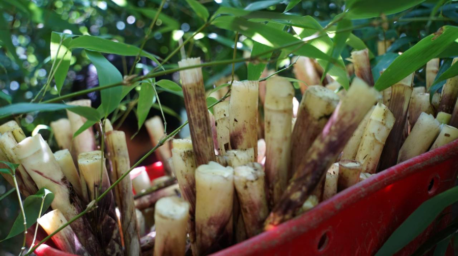 下午四时,笋农们陆续出山,小草坝镇的竹笋收购点人声鼎沸。还没进收购点,就听见电子秤的报数声、讨价还价声、竹笋落地的闷响交织在一起,热闹的场景透出丰收的喜悦。一张张满载鲜笋的三轮车、摩托车源源不断驶来,收购商们忙着过秤、记账、付款,不一会儿,收购点的空地上竹笋便堆成了青黄色的小山。