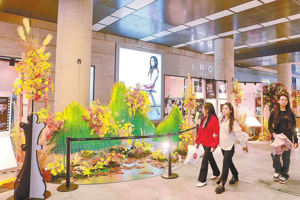 近日,以“老昆明八景”为创作灵感的大型艺术装置亮相昆明顺城购物中心。滇池月夜、云津夜市、螺峰叠翠、龙泉古梅、商山樵唱、官渡渔灯、灞桥烟柳、蚩山倒影8个承载着昆明集体记忆的文化意象,通过沉浸式场景化手法转化为可触可感的现代艺术表达。图为“螺峰叠翠”置景吸引市民游客。记者 胡妤雅 摄