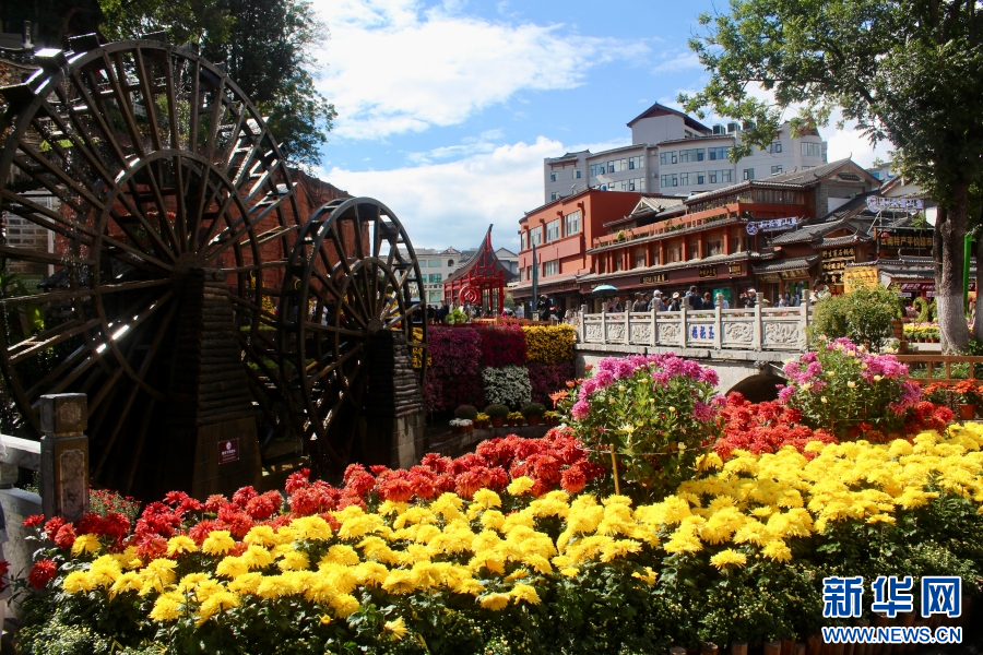 鲜艳的菊花装点丽江古城(9月29日摄)。新华网发