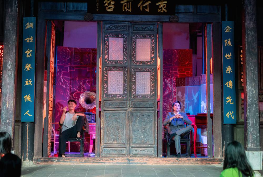 演出将马家大院巧妙还原为1932年昆明浮华喧嚣的戏院,通过精心设计的多层次表演区域,实现演员与观众“零距离”互动。观众将不再只是旁观者,而是置身于多个沉浸式区域中,拥有“观戏者”与“戏中人”的双重身份,深入剧情,感受角色命运起伏。
