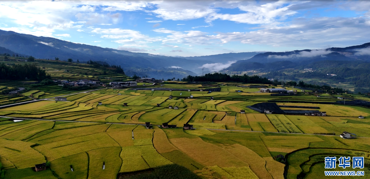 龙江乡丰收的稻田(10月1日摄)。新华网发(龙陵县融媒体中心 供图)