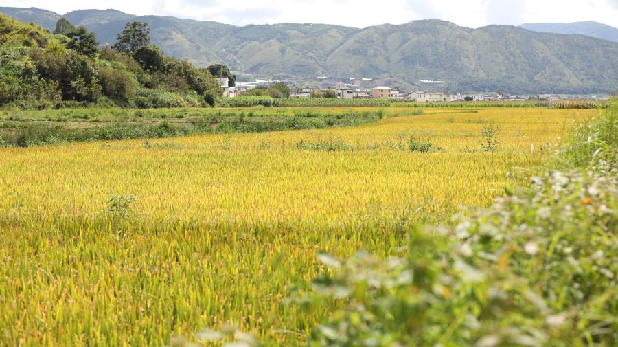 金秋十月,走进云南省保山市施甸县水长乡,连片的稻田在秋风里泛起绿色波浪,“杂交水稻之父”袁隆平院士生前题写的“云南施甸·中国杂交水稻最佳繁育基地”在阳光下熠熠生辉。