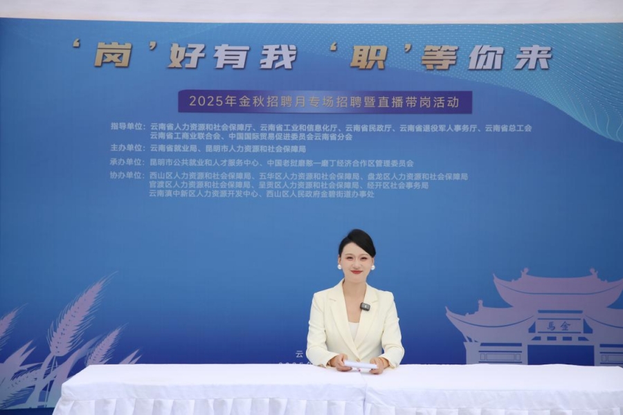 近日,“‘岗’好有我、‘职’等你来”——2025年金秋招聘月专场招聘暨直播带岗活动在云南省昆明市西山区金碧广场举行。