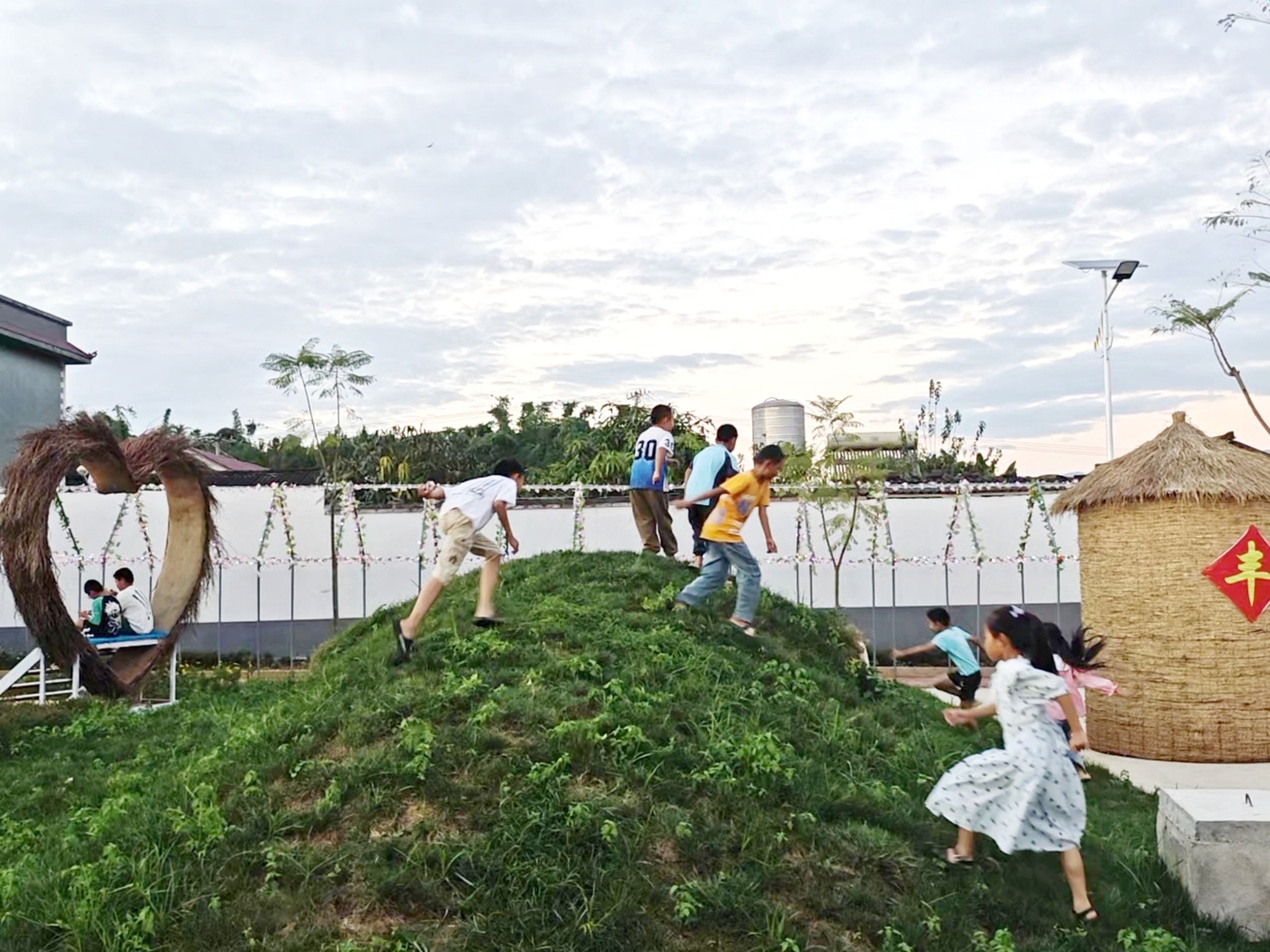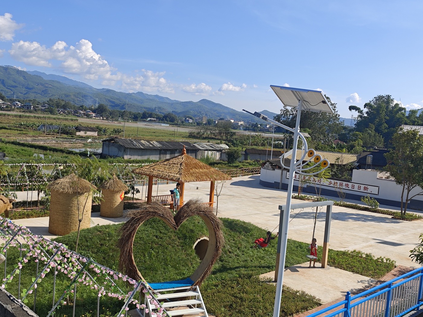 傍晚的民乐镇微风送爽,白象村田坝村民小组的村民们结束了一天劳作,悠闲地行走在寨中新修的水泥路上。炊烟袅袅,笑语声声,处处洋溢着幸福的气息。如今宜居宜业的乡村新貌,得益于2024年以来实施的人居环境提升和“千万工程”等项目。