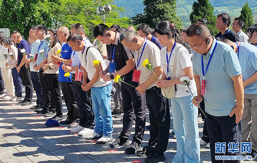 嘉宾在纪念碑前敬献鲜花(10月12日摄)。新华网发(普云红 摄)