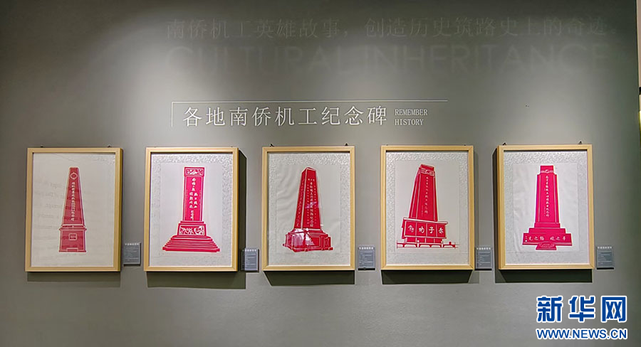 各地南侨机工纪念碑剪纸(10月12日摄)。新华网发(普云红 摄)