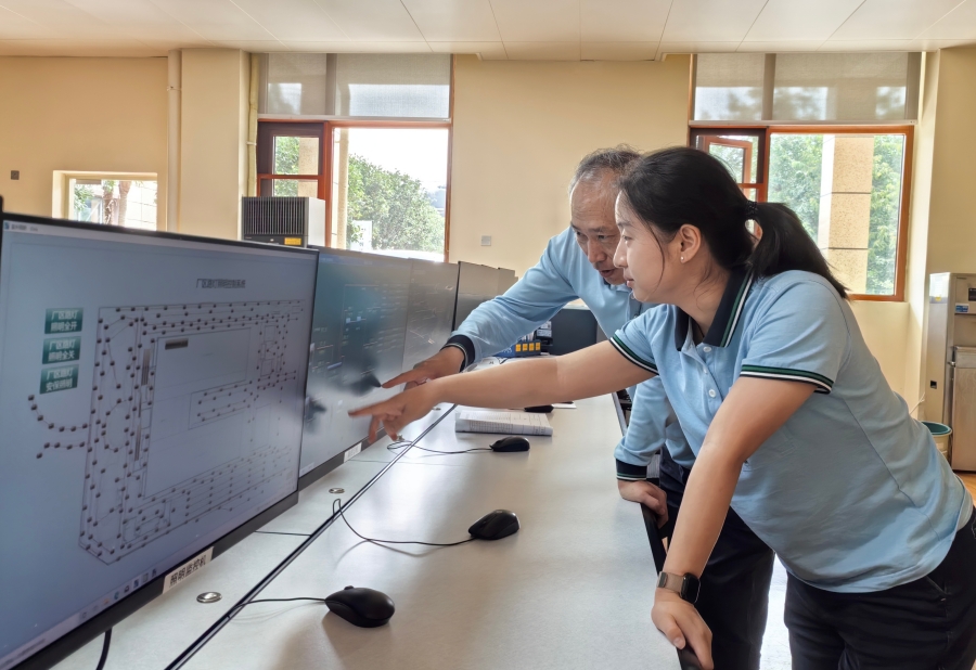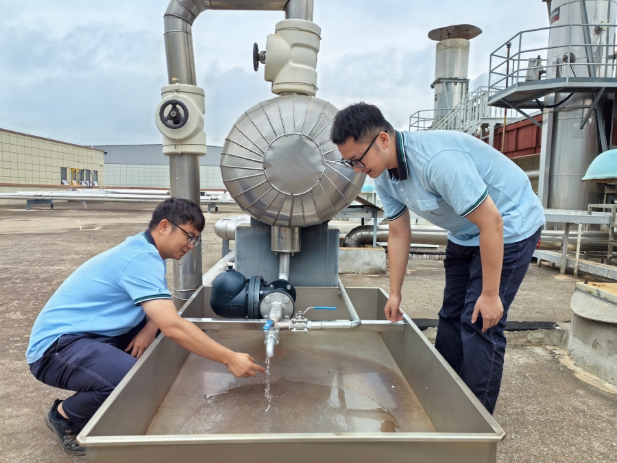 团队成员在检验除氧乏汽回收效果(资料图)。尹萍 摄