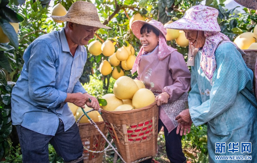 金秋时节,各地农民抢抓农时,有序开展秋收、秋种、秋管等农事活动,田间地头一派繁忙景象。在云南省西畴县鸡街乡下坝村,沉甸甸的柚子挂满枝头,丰收景象让果农脸上绽放笑容。