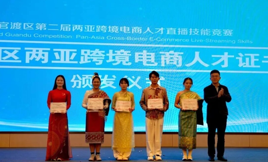 颁奖现场,65名表现优秀的选手获授“官渡区跨境电商专项人才证书”,正式入选官渡区南亚东南亚跨境电商人才库,“云南南亚东南亚人才超市”不断扩容。以此为基础,官渡区正式发布“两亚跨境电商人才培养计划”,集成政府、园区、高校及企业资源,为获证人才提供涵盖定制课程、名企实训、创业孵化与国际认证在内的全周期成长服务。