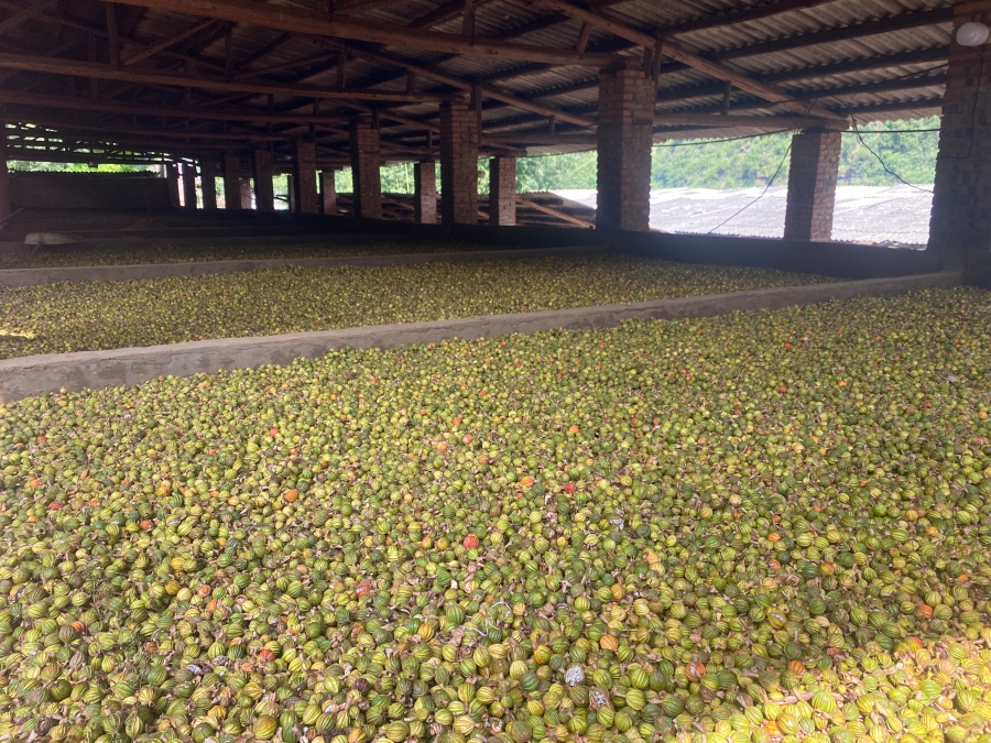 加工厂正在烘干的砂仁(10月15日摄)。