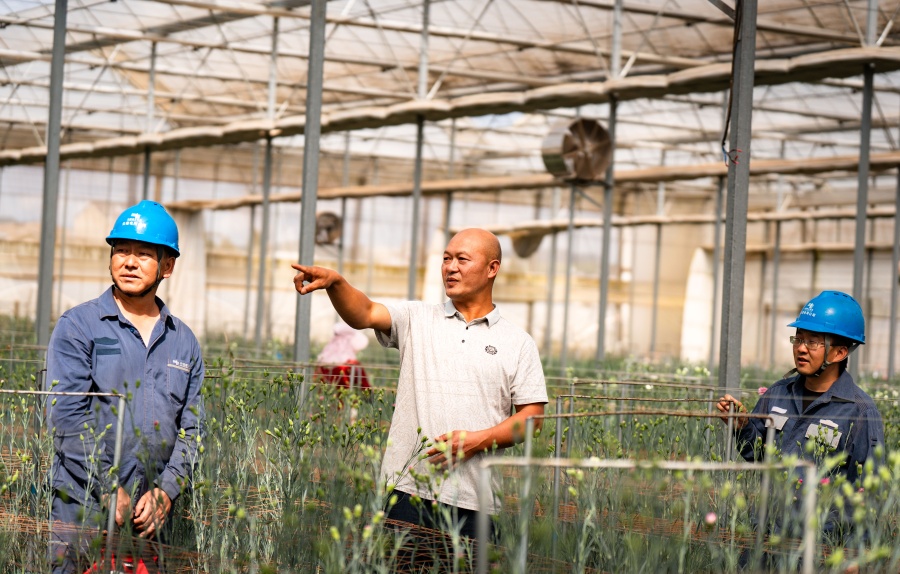 供电人员到鲜花种植基地走访(9月5日摄)。
