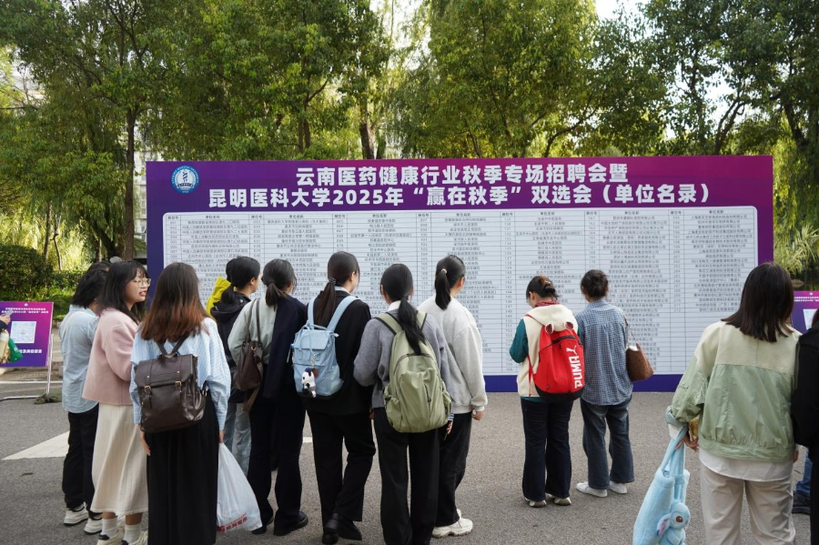 10月18日,“云南医药健康行业秋季专场招聘会暨昆明医科大学2025年‘赢在秋季’双选会”在昆明医科大学呈贡校区举办。招聘会现场,昆明医科大学设置了AI精准推送匹配岗位服务,为毕业生提供精细化的就业指导。招聘会共开展宣讲面试46场,初步达成就业意向1680人次。