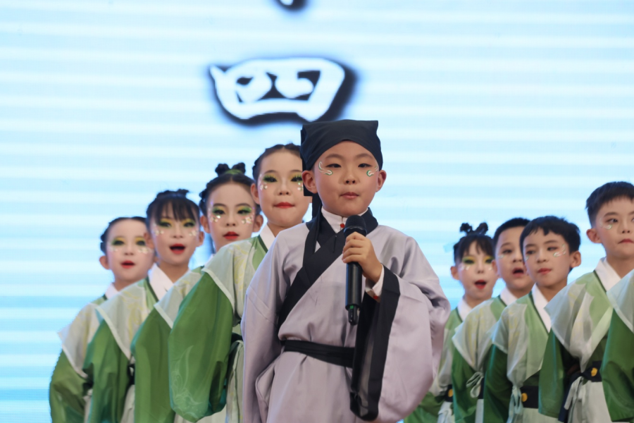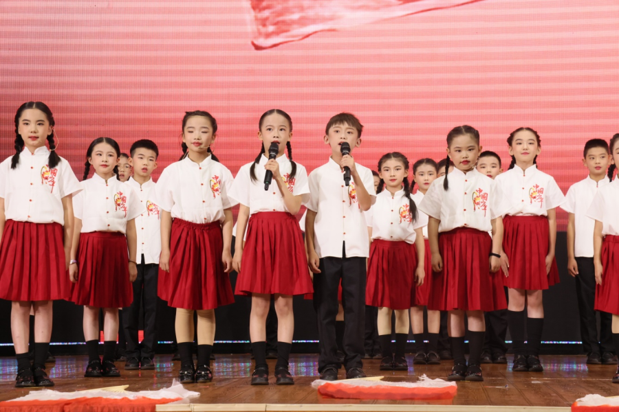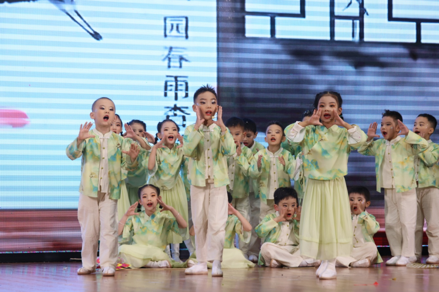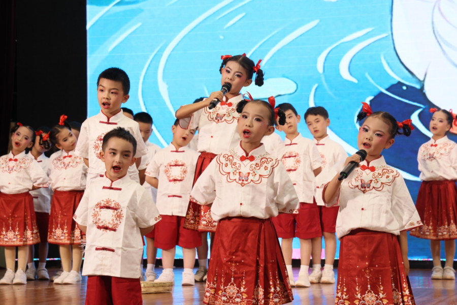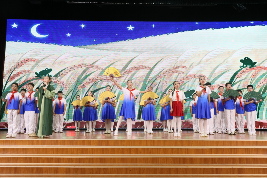 比赛分为低段组、中段组、高段组进行。 一、二年级学生以童声稚语演绎《薪火相传中国话》《诗词里的童年》等节目,天真烂漫,充满朝气;三、四年级学生通过《遇见苏轼》《土地的誓言》等节目,展现对诗词的感悟与情感共鸣;高段组学生则以《剑胆词心——走近辛弃疾》《清澈的爱,只为中国》等作品,表达对历史与家国的深刻思考。