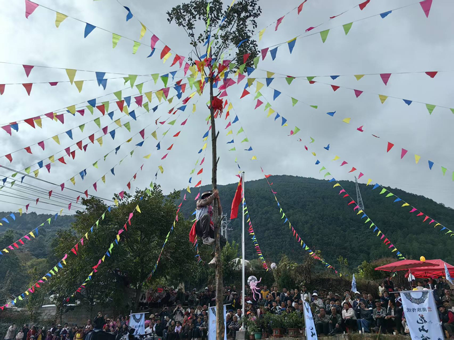开幕式现场,盛装的苗族村民以悠扬的歌声和欢快的芦笙舞热情迎接八方宾客,作为“花山节”特色项目的“爬花杆”表演引得现场掌声阵阵,营造出浓郁的民族节庆氛围。同时,玉龙县民族文化工作队带来了“文化送戏进乡村”惠民演出,舞蹈《团结花开丽江美》《纳西幸福万年长》、二胡独奏《战马奔腾》等系列精彩节目轮番上演。