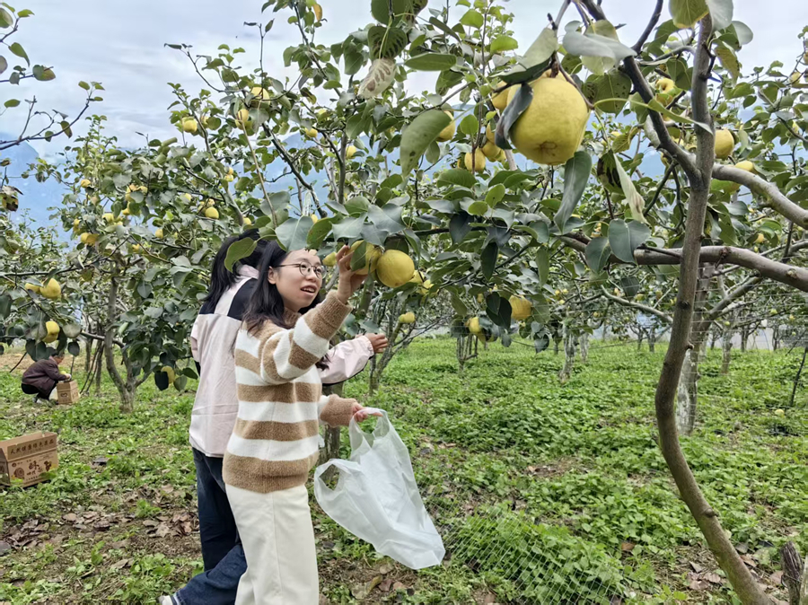 为让群众沉浸式体验乡村魅力,本次活动设置了丰富多样的互动环节。在四兴酥梨园分会场,“开园农技大比拼”、欢乐抓鸡赛、趣味采摘赛等富有乡土气息的项目,让游客在趣味比赛中感受农事乐趣与丰收喜悦,为期5天的活动还将陆续开展徒步登山、长江民族风情摄影等系列活动。