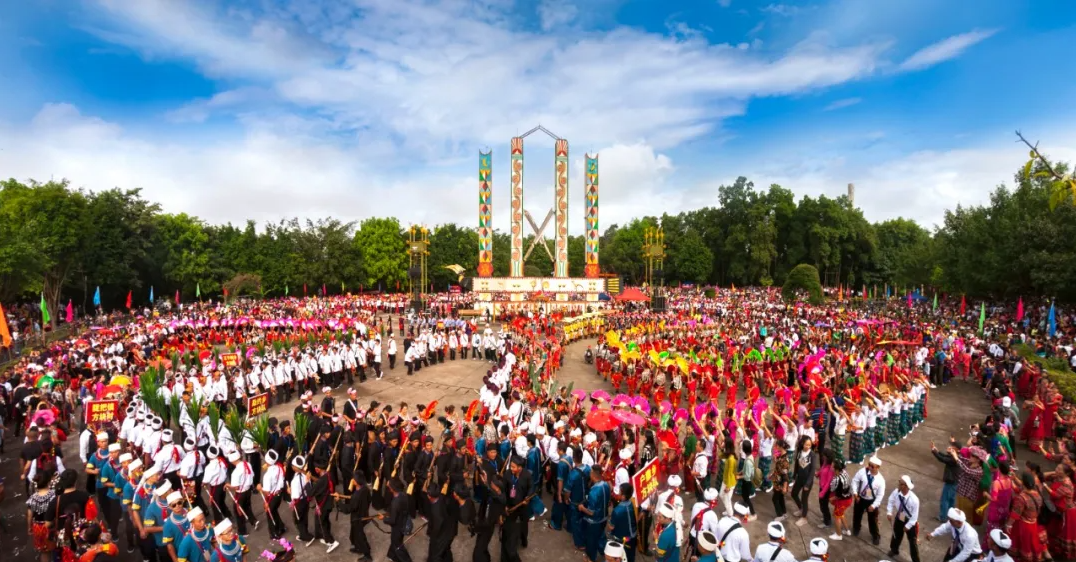 德宏是汉族、傣族、景颇族、阿昌族、傈僳族、德昂族等40多个民族世代共居的美丽家园,“十里不同风,百里不同俗”的多元文化并没有造成彼此隔阂,反倒交织成一曲温润的和声。傣族的柔美藏在剪纸流畅的线条里,景颇族的豪迈写在刀舞的抡转中,德昂族的古朴浸在手工织锦的经纬间,阿昌族的精巧凝于户撒刀的纹路里,傈僳族的热烈漾在三弦的挥弹间……这些文化从不是博物馆里的陈列,而是流淌在生活里的鲜活血脉。一年四季节庆和民族文化体验活动不停,目瑙纵歌节时,万人踩着统一步伐狂欢,再陌生的来客也会被热情拉进队列,跟着节奏感受团结的力量;泼水节来临,全城化作水的乐园,以水为礼,水花溅起的不仅是欢笑,更是不分你我的善意与接纳……