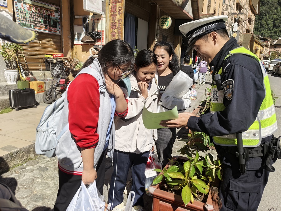近期,怒江傈僳族自治州贡山独龙族怒族自治县公安局第五批“彩虹先锋·轮训铸魂”轮训队员与独龙江交通管理中队,联合独龙江边境派出所、独龙江乡中心学校等多部门,以学校“护学岗”安保工作为契机,集中开展安全宣传活动。