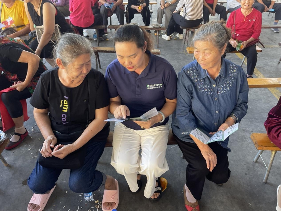 中国人寿财险盈江县支公司工作人员为老人讲解金融知识(10月29日摄)。龚茂东 摄
