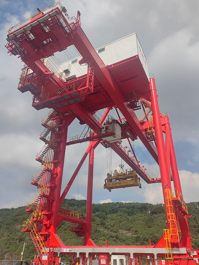 水富港中心作业区码头,集装箱岸桥正在吊装集装箱。