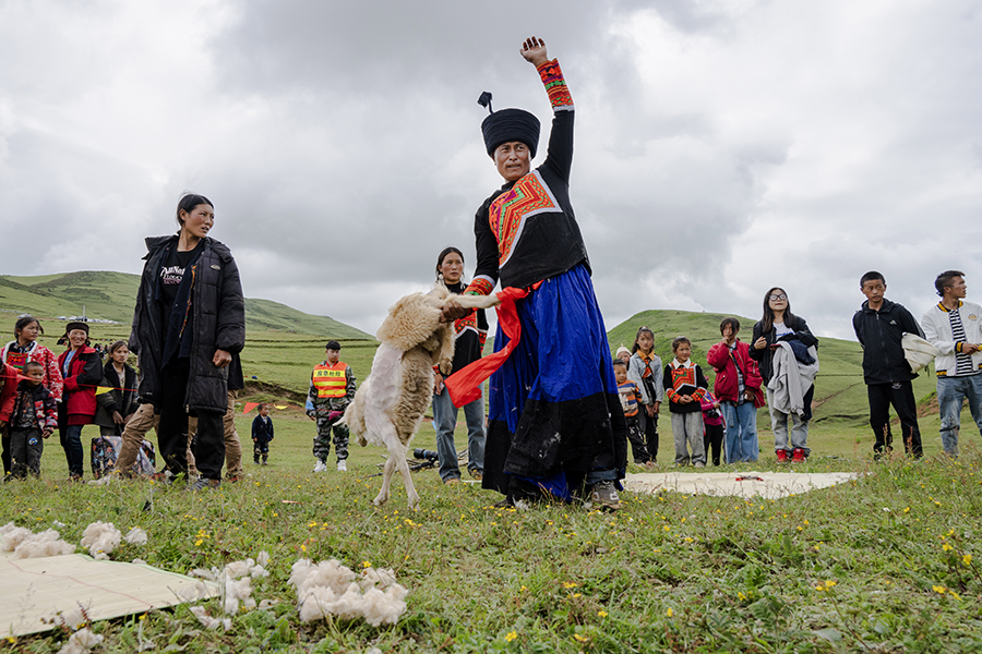 凌征国入选摄影作品《新彝族人影像——剪羊毛冠军》(2024年7月18日摄)。