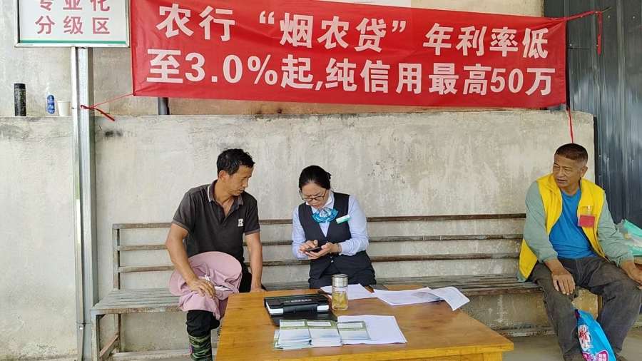 工作人员为烟农提供“一站式”服务(9月14日摄)。周寸伟 摄
