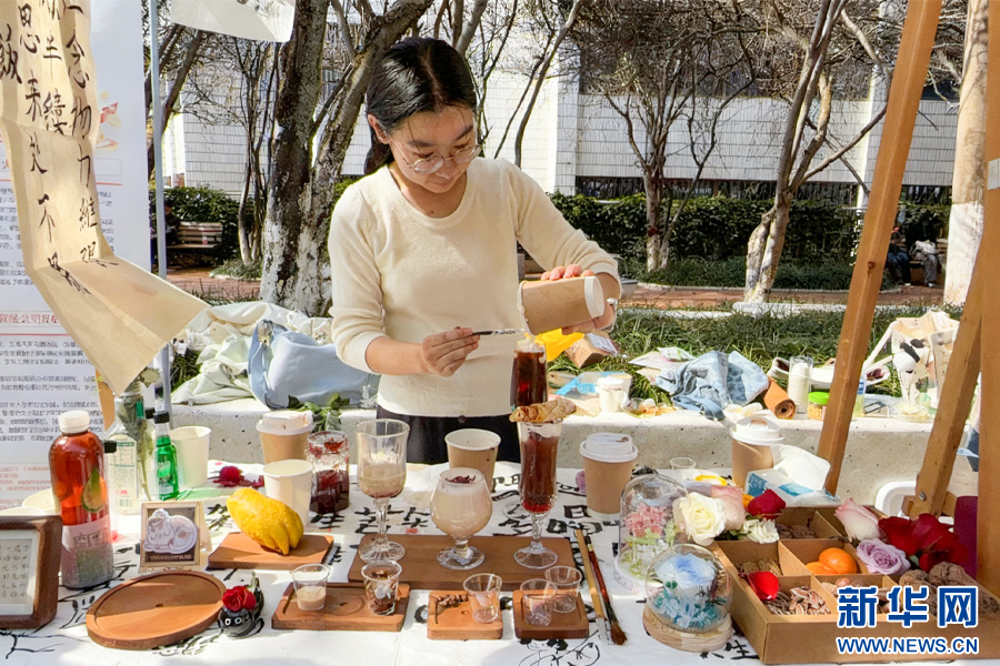 云南农业大学学生制作的咖啡(11月7日摄)。新华网发(李浩 摄)
